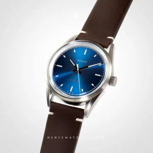 A future classic. A vintage-inspired everyday watch fashioned from stainless steel, this elegant three-hand model pairs streamlined proportions with minimal design codes for timeless appeal. With its clean, sunburst dial in three colour choices (Slate Grey, Black Onyx and Matisse Blue), fine finishing, and fuss-free automatic movement, the Alvia carries over easily from work to play. At 38mm, it is a mid-sized piece that sits comfortably on most wrists. Durability and comfort were key priorities driving the design, from the dimensions of the timepiece to the materials used. 316L stainless steel, which forms the case and lugs, is valued for its resistance to shock, scratches, and rust, while the brushed finishing gives the metal a flowing, seamless aesthetic. Sapphire crystal is widely used in the watchmaking world for its exceptional durability and clarity and is here treated with an anti-reflective coating to ensure visibility from every angle. The top is cleverly domed to catch the light and infuse depth and dimension, inspired by retro acrylic designs of the past. Meanwhile, the exhibition-style caseback is covered entirely by sapphire crystal to showcase the gleaming details of the Seiko calibre NH35 within. The dial comprises two layers, with a smaller central arena stacked on top a larger stainless steel base to create a subtle sense of depth. Hour markers and hands are brushed in SuperLuminova for readability. Dials are available in Slate Grey, Black Onyx and Matisse Blue, each limited to 100 pieces, and genuine calf leather straps complete the urban look.